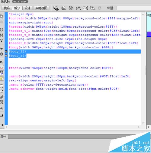 3、因為我們準備將body部分劃分為2欄,也就說,我們應該定義不同的body,起名一個l一個r,定義代碼如下: