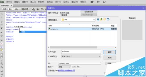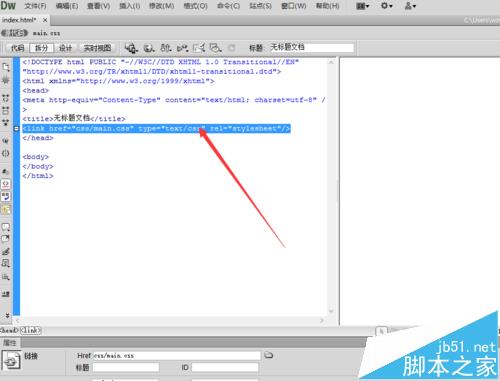 4、而后輸入一般性代碼:<link href="css/main.css" _fcksavedurl=""css/main.css"" type="text/css" rel="stylesheet"/>
