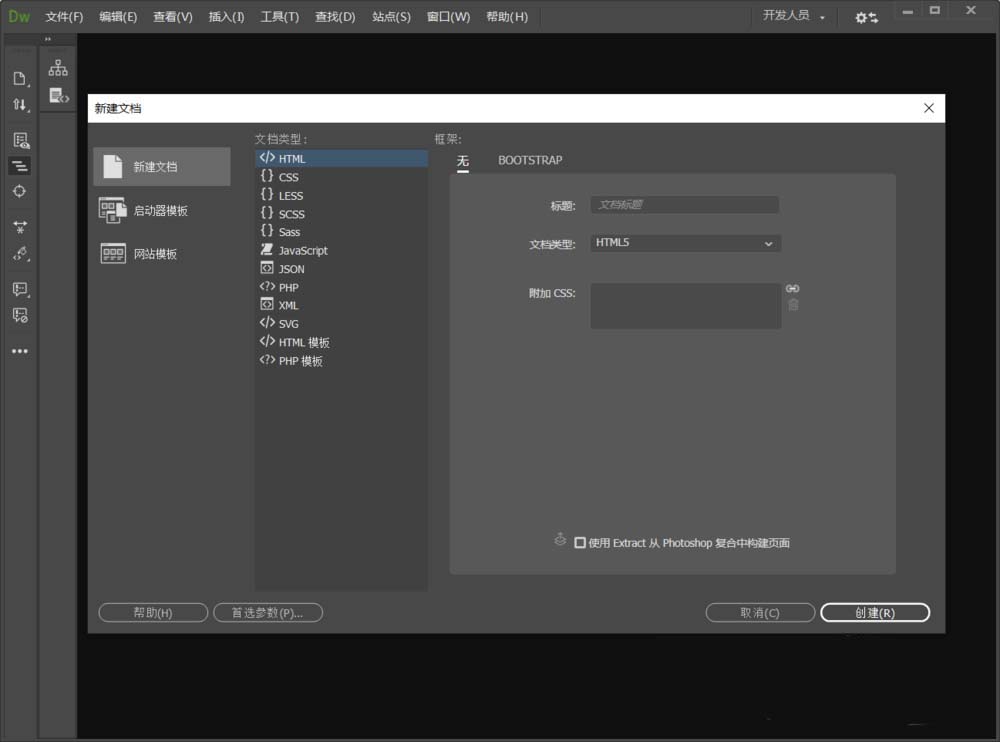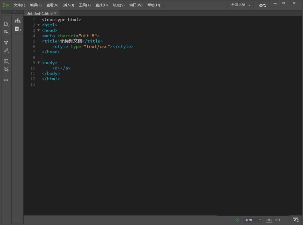 1、啟動Dreamweaver軟件,新建一個html文檔。