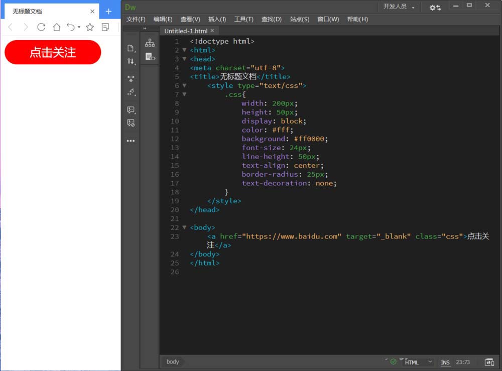 Dreamweaver CC2019中想要創(chuàng)建一個按鈕并給按鈕添加超鏈接,來實現(xiàn)點擊關注的效果,該怎么實現(xiàn)呢?下面我們就來看看詳細的教程。