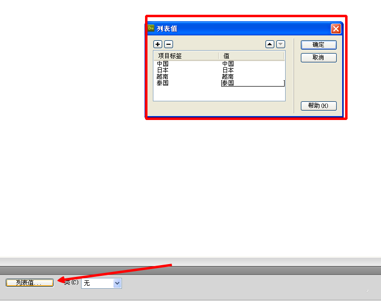 Dreamweaver網(wǎng)頁怎么制作一個帶有列表值的下拉菜單?