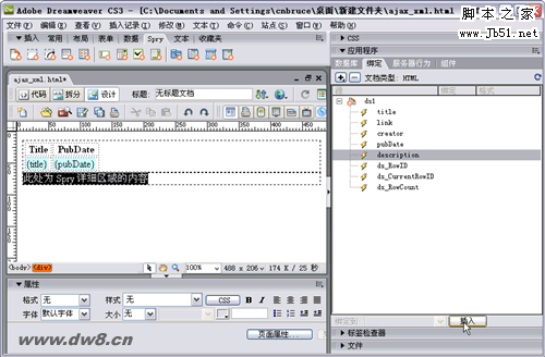 五,將“詳細(xì)內(nèi)容”插入Spry詳細(xì)區(qū)域
