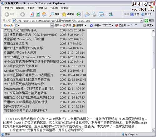 跨域顯示遠(yuǎn)程XML數(shù)據(jù),同時(shí)單擊每行標(biāo)題都能在當(dāng)前頁(yè)無(wú)刷新打開(kāi)內(nèi)容查看,甚好。