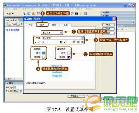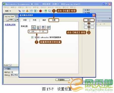 ( 5 )設(shè)置的 x 軸和 y 軸參數(shù)。在【位置】標(biāo)簽選項中設(shè)置彈出菜單的 x 軸和 y 軸參數(shù),這兩個參數(shù)表示彈出菜單左上角到網(wǎng)頁左上角的距離,如圖 17-7 所示。