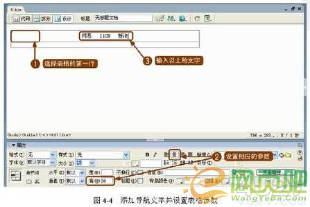 ( 4 )添加導航文字并設置表格參數,如圖 4-4 所示。