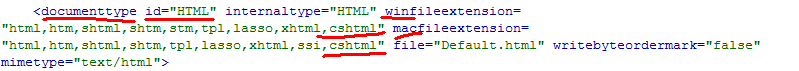 然后修改id為“HTML” 的documenttype標簽里面的winfileextension和macfileextension屬性,在那兩個屬性里面添加文件類型