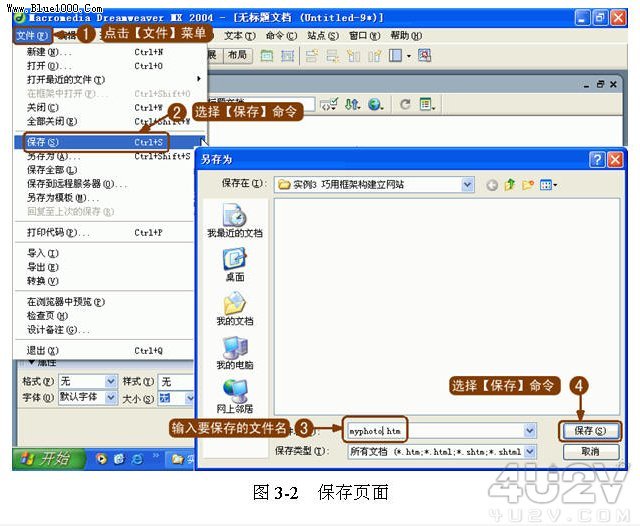 ( 2 )保存頁面,保存時可以隨意設置文件名稱,比如輸入“ myphoto (我的相冊)”,如圖 3-2 所示。