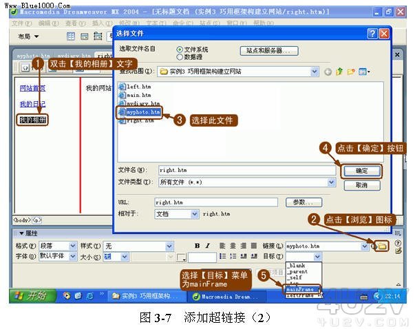 ( 8 )然后再添加“我的相冊”超鏈接,如圖 3-7 所示。