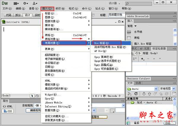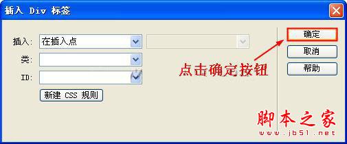 2、選擇Dreamweaver的“設(shè)計(jì)”窗口,插入—布局對象—Div標(biāo)簽。在隨后跳出的“插入div標(biāo)簽”對話框中直接點(diǎn)擊“確定”按鈕(如圖3所示)。
