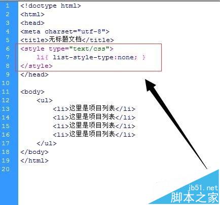 2、然后新建一個html文檔,添加項目列表代碼,并保存到合適的位置。