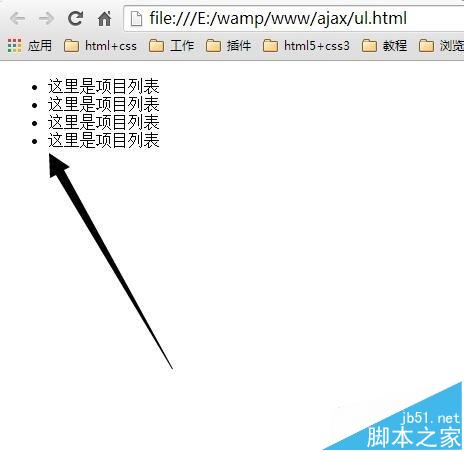 3、在瀏覽器中預覽會看到默認有黑色的圓點。