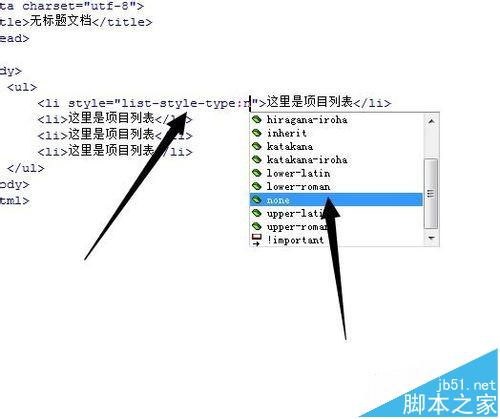 4、去掉這些圓點其實很簡單,只要把li標簽的list-style-type:none;設置成這樣就可以了。