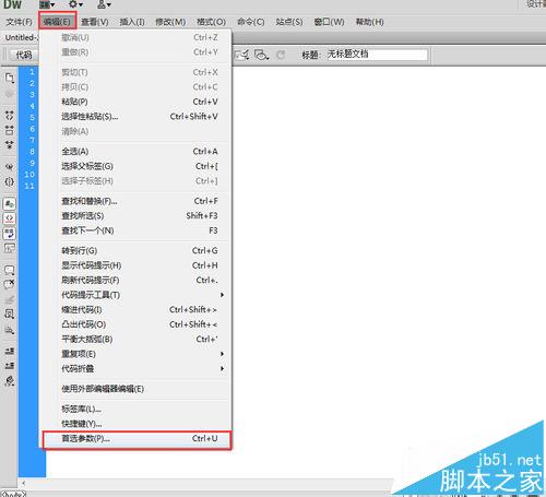 2、點擊菜單欄上的“編輯”——“首選參數”或者是按Cttl+u快捷鍵。