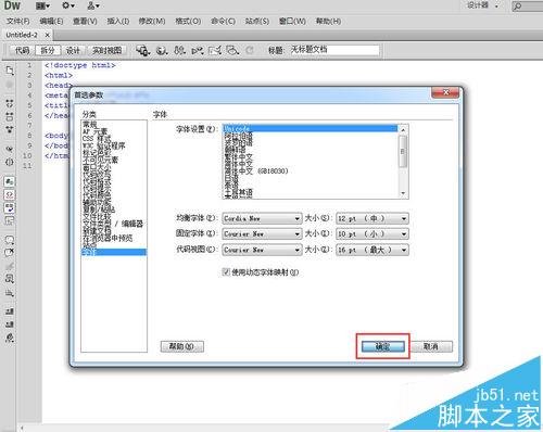 3、在首選參數對話框中選擇分類為‘字體’。如圖:
