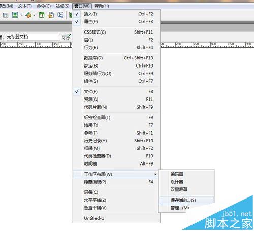 2、在開始菜單欄中找到窗口菜單選擇工作區域布局,如下圖所示: