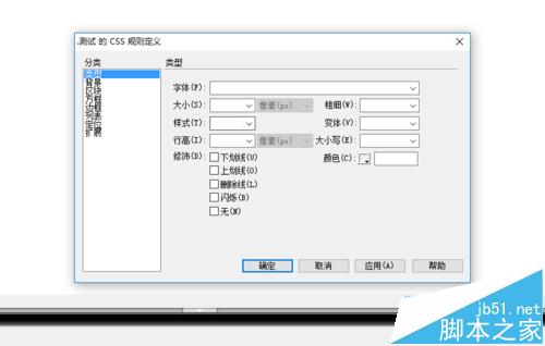 6、隨后彈出圖下中所示的測試CSS規(guī)則定義