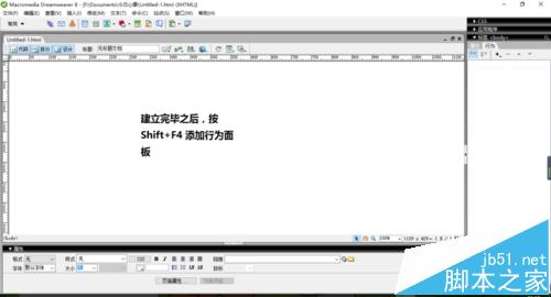 3、在新建的文檔上按快捷鍵Shift+F4添加行為面板