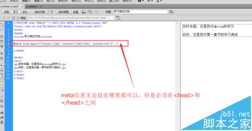 4、下面讓我們改正這個錯誤,在網頁編碼里面加上聲明編碼的meta信息