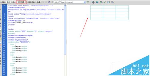 1、我們點實時視圖看預覽的表格邊框比較粗,實際上在瀏覽器觀看也是一樣的,我就不貼圖了。