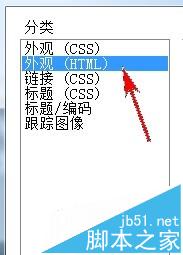 5、在“頁面屬性”左邊菜單中選擇“外觀(HTML)”
