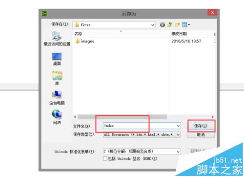 8、選擇保存的名稱一般情況下網頁的首頁都叫index,將名稱更改后確認即可在瀏覽器中看到剛才的成果啦。