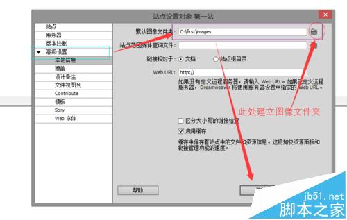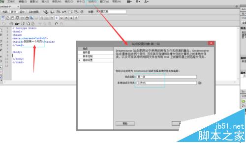 4、網站是有站點的,下面新建一個站點,單擊站點-》新建站點,彈出如下對話框,將網站名稱起名為“第一站”,站點文件夾點擊后面的文件夾小圖標新建一個即可,文件夾只能用英文字母。