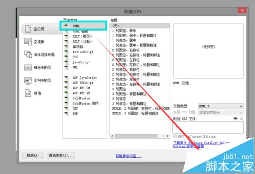 3、單擊文件-》新建,頁面類型選擇html,點擊創建即可創建一個空白頁面出來了。