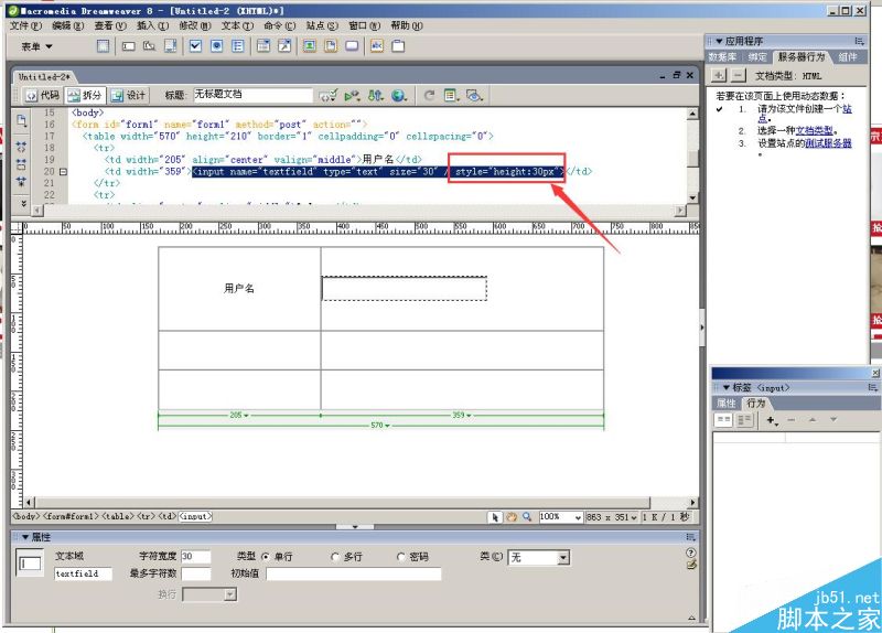 打開拆分窗口,在域所對應的代碼中插入“style=“height:30px”” ”即可;