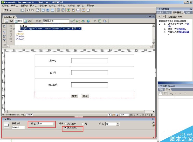 以上就是Dreamweaver簡單制作用戶注冊表單方法介紹,大家按照上面步驟進行操作即可,希望這篇教程能對大家有所幫助!