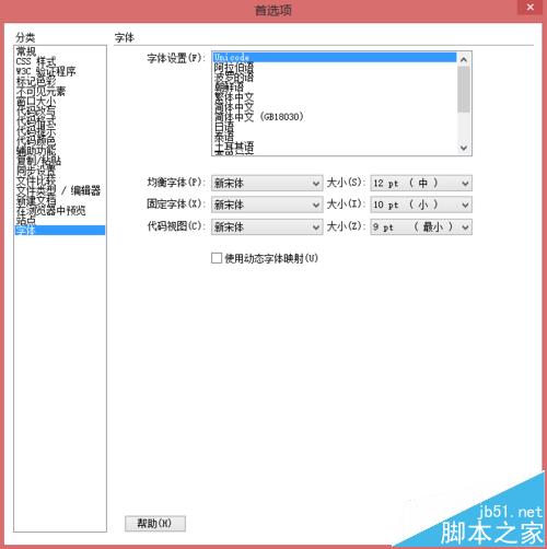 3、在“首選項”中找到“字體”,全部設(shè)置成統(tǒng)一的字體, 可都設(shè)置為“宋體”;