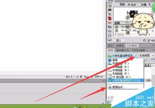 1、打開Dreamweaver,找到軟件中我們的站點,如圖: