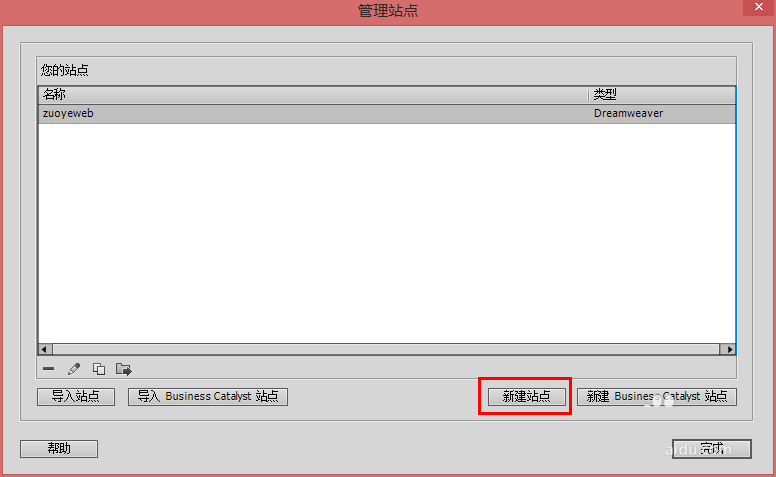 3、打開(kāi)管理站點(diǎn)中的“新建站點(diǎn)按鈕”。