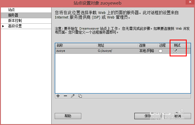 6、在剛剛新建的服務(wù)器中勾選“測(cè)試”然后單擊保存。