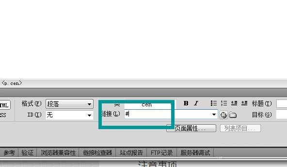 2、給文字加鏈接。選中文字,在屬性面板里鏈接后面輸入“#”,“#”就是空鏈接,無實際鏈接內容,文字有鏈接的屬性。