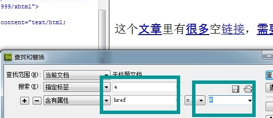 4、關鍵的點來了,Dreamweaver里有個跟word里類似的“查找替換”功能,我們可以利用這個功能去掉空鏈接。
