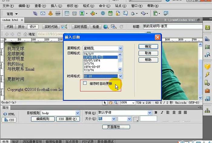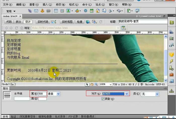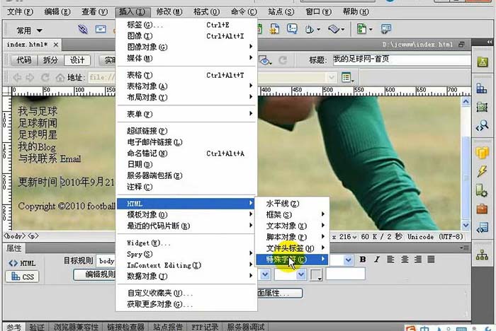 使用dw在網頁中添加自動更新的時間日期、及添加空格號到網頁中;插入水平線;特殊符號都是很簡單的。