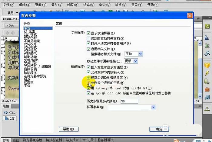 3、在網頁中添加空格;快捷鍵ctrl+shift+Space或點擊編輯-首選參數-允許多個連續的空格
