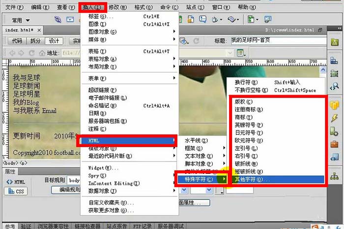 Dreamweavr怎么給網插入版權符號的特殊字符?