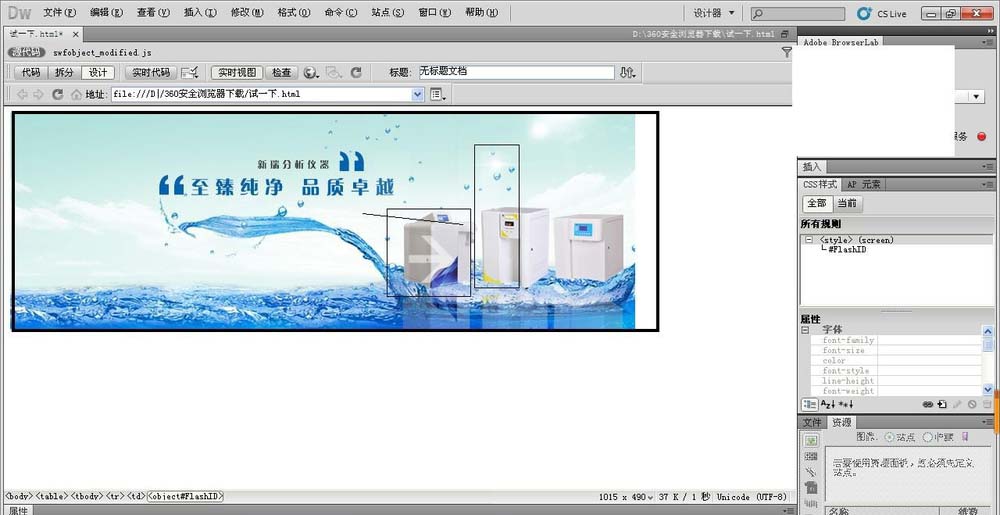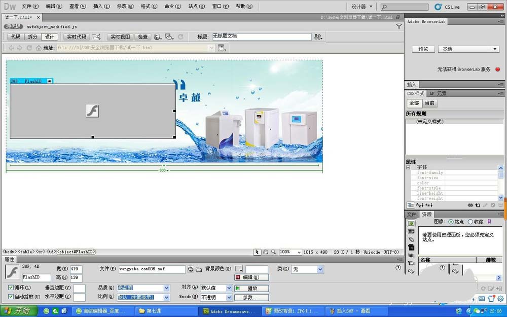 6、最后,保存,預覽,結果實際上是出來了,大框子里面的小框,實際上是加入的FLASH。但是,圖片嘛,效果太差了,基本看不出來。