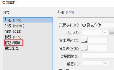 3、選擇頁面屬性,然后點擊“標題/編碼”選項卡,搞過代碼的朋友應該都熟悉這個詞。