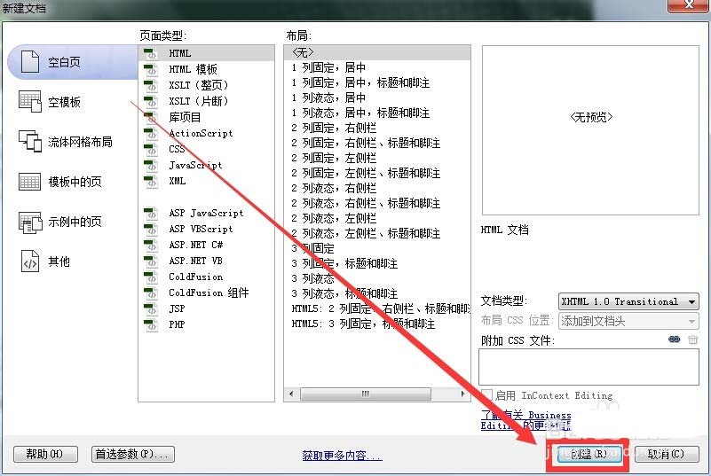2、新建的類型默認就可以了,如果有其它需要,可以自己選擇頁面類型和布局等等,讓點擊創建按鈕。