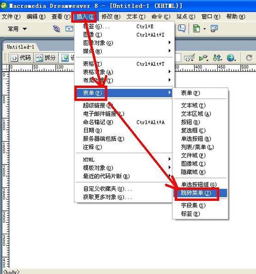 2、單擊菜單欄中的“插入”——表單——跳轉菜單。