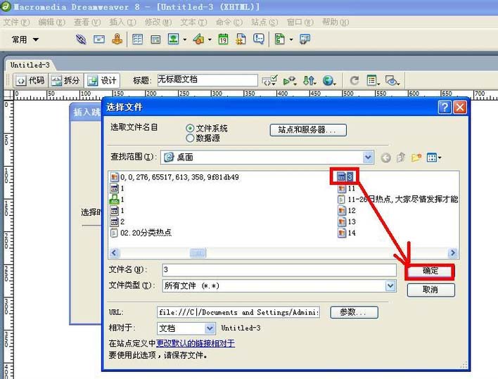 6、在彈出的“選擇文件”對話框選擇要跳轉的文件,單擊“確定”按鈕。