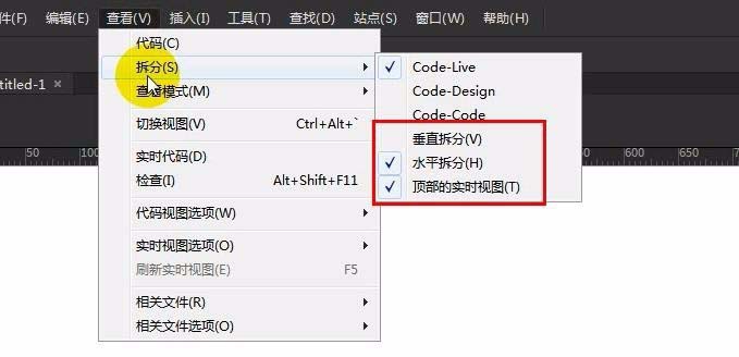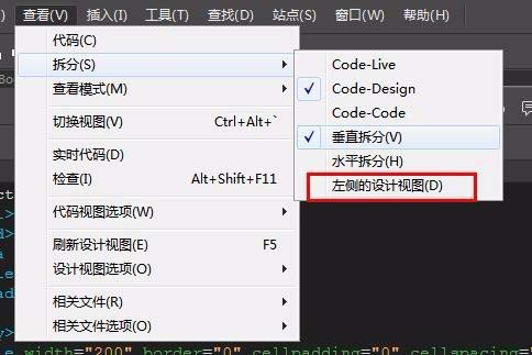 菜單欄:查看-拆分-垂直拆分。(勾選垂直拆分或者水平拆分,可以選擇設計視圖的顯示位置)
