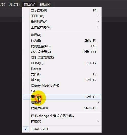 4、菜單欄:窗口-屬性。打開屬性面板,如圖,拖動面板到底部習慣位置,出現藍色,松開鼠標
