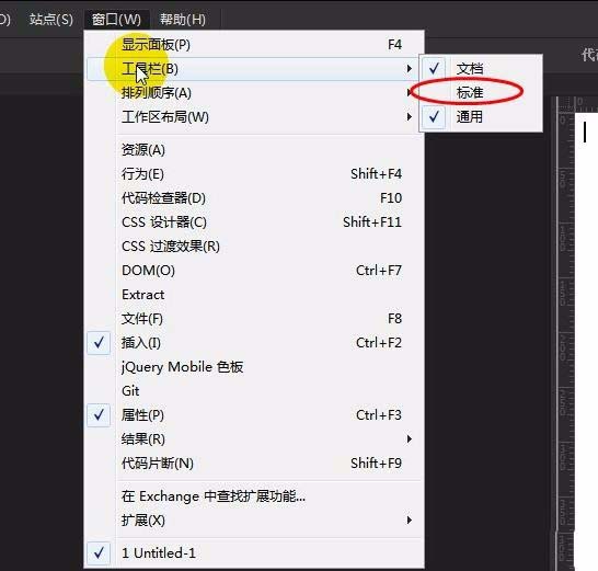 5、菜單欄:窗口-工具欄-標準,如圖拖動