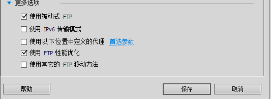 6、若測試不成功,則根據系統提示操作,通常需要在“更多”選項中勾選或取消勾選“使用被動式Ftp”,若使用的網絡連接方式為IPv6,則需要勾選“使用IPv6傳輸模式”