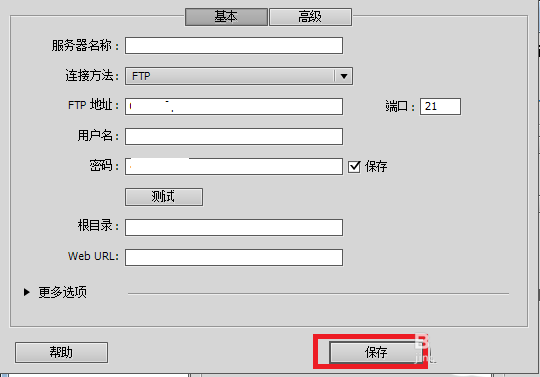 Ftp地址,用戶名,密碼鍵入申請域名時保存的信息,注意不要更改Ftp地址的端口