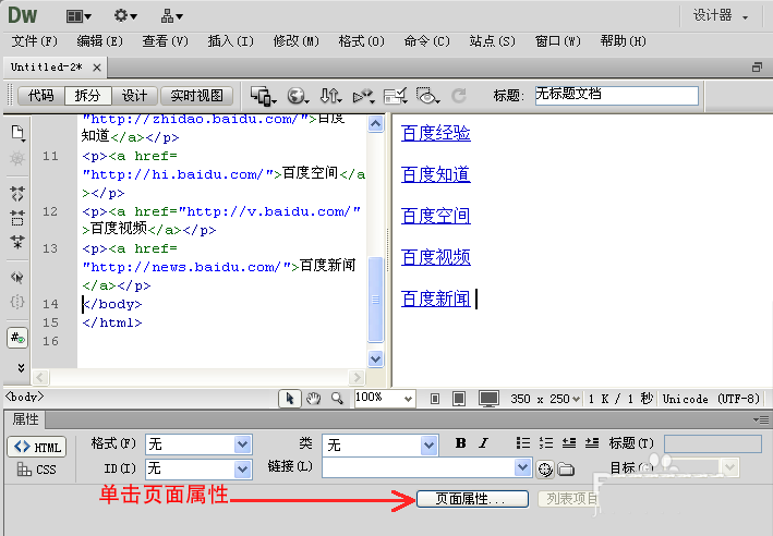 4、鏈接輸入完畢,單擊頁(yè)面屬性
