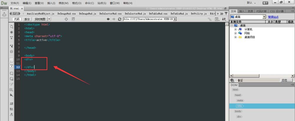 1、打開Dreamweaver軟件,新建一個html文檔,在body中輸入一個div標簽